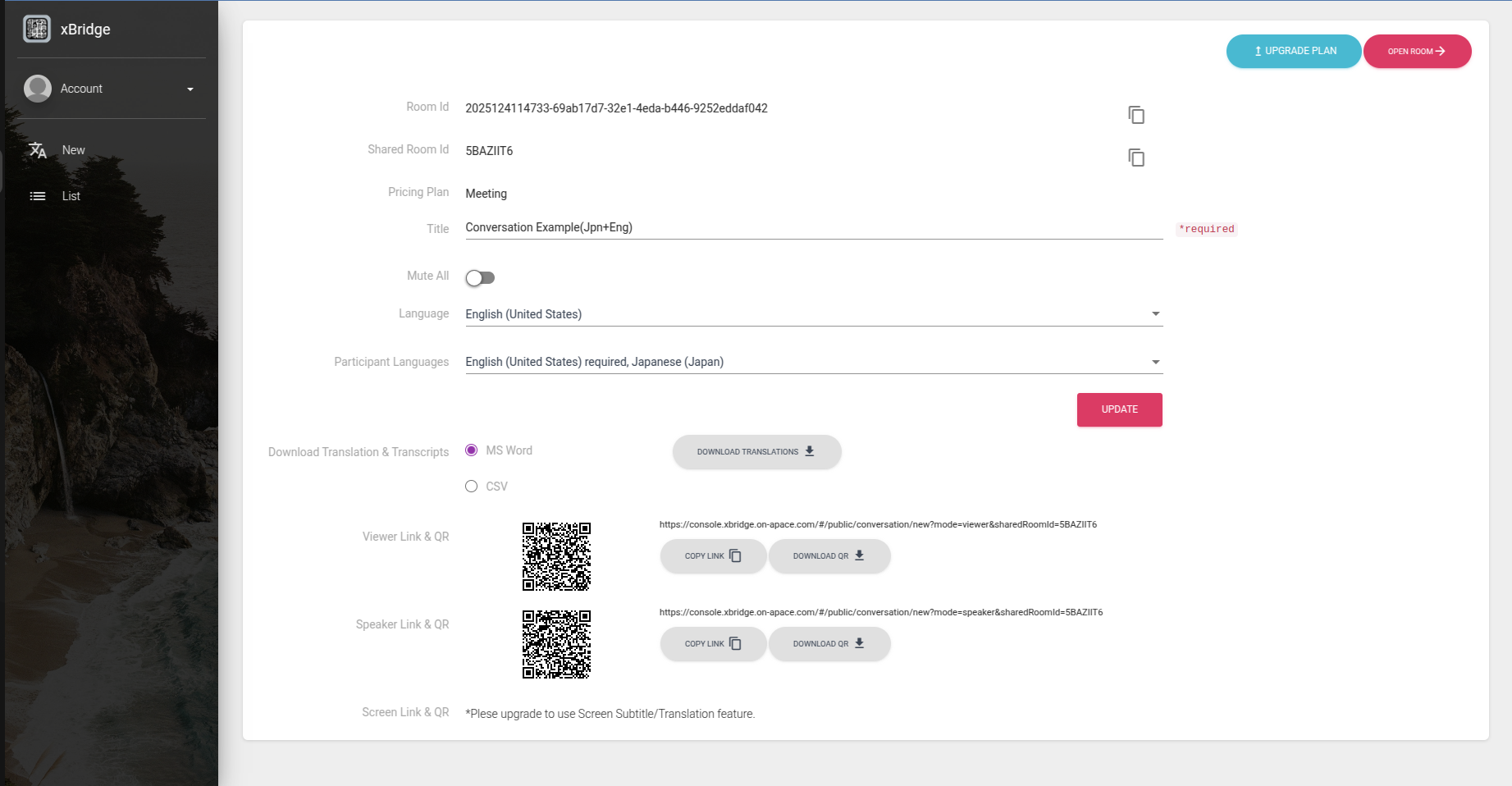 | Speaker Link & QR | Download the QR code for speakers. Alternatively, click the copy icon to directly copy the link. |
