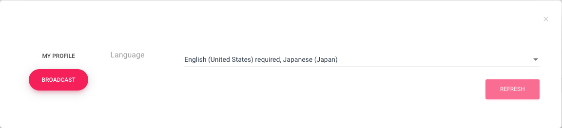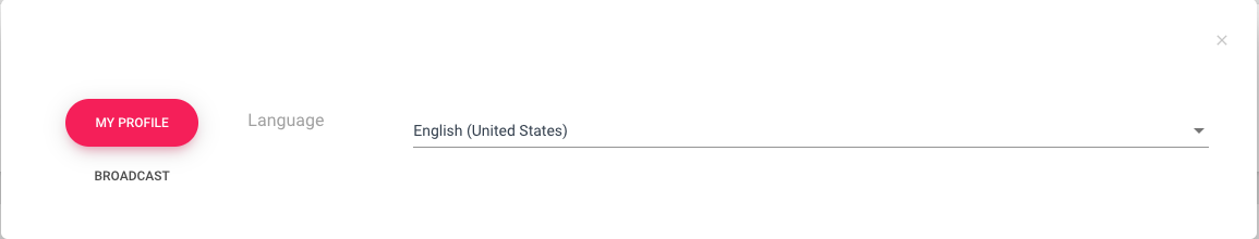 To change the language settings for Speakers and Viewers, click the BROADCAST tab in the menu and select languages.