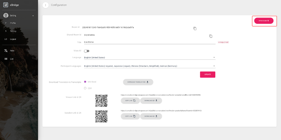 | Viewer Link & QR | Participant link and QR code dedicated for Viewers. |
